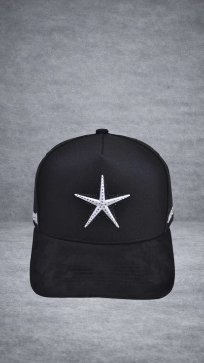 Eye-catching front: White embroidered star with metallic details that stand out against the black background, symbolizing light and leadership.